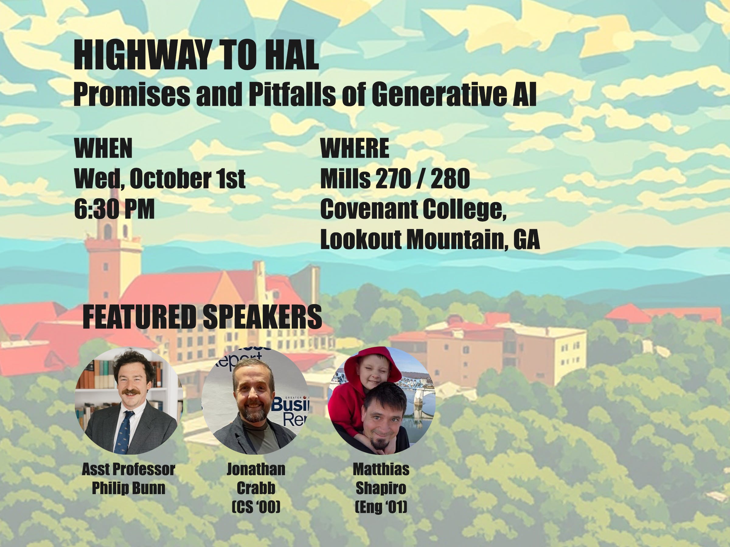 Wednesday, Oct 1st, join us at Covenant College for a discussion on AI, ethics, and futurism